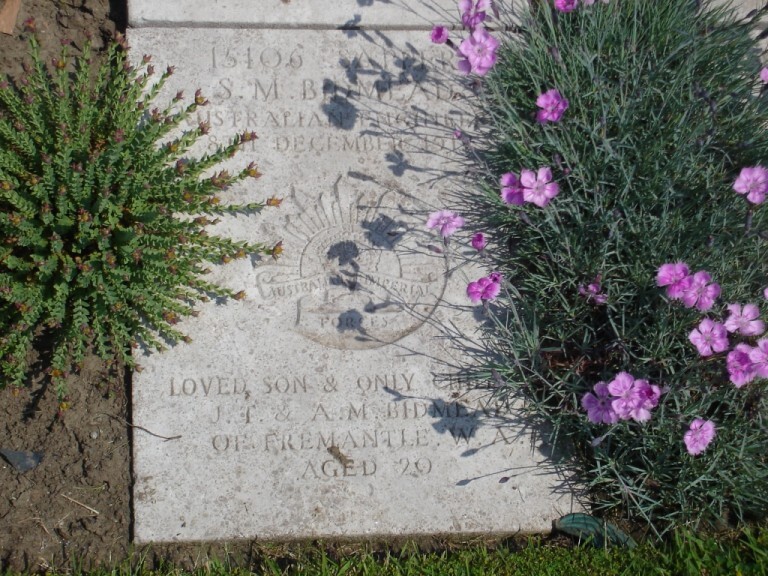 I am pleased to be able to say that I immediately recommended him for a decoration, but unfortunately it was not awarded by the Army authorities. In such large operations there are so many gallant acts that it is difficult to choose between them. In conclusion I would like to say that I am proud of having such a splendid man as your son under my command, and I beg of you and Mrs Bidmead to accept my most heartfelt sympathy in your great loss. I am sure it must be a great consolation to know that your son, though, dead, died doing his duty most nobly and well.”