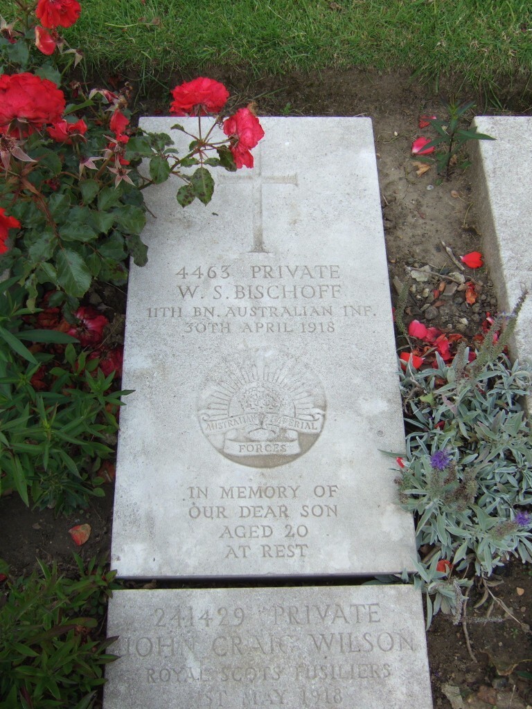 Walter was buried in Boulogne Eastern Cemetery Plot No. IX.B.16. He was the 2nd son of Charles & Christina Bischoff to die in the war. His brother Norman died with the 28th Battalion in January 1917.
