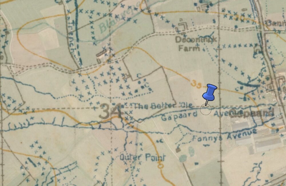 “I was right alongside him when he was killed by a shell about 10am on the 31st July in a trench to the right of Gapaard Avenue. He was killed straight out and his body was buried in the same grave with a man called West close to the trench.”