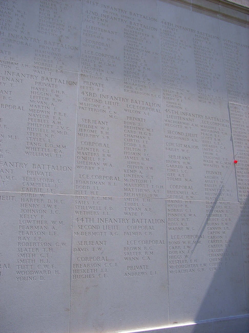 On the 21st March 1918 the Germans launched their large offensive which broke through the Third & Fifth British Armies. The 44th Battalion as part of the 3rd Division was sent down to the Somme to try and stem the German advance. On the night of 28th March 1918, the men of the 44th Battalion were advancing in the rain, their gas capes glistening wet, on the left of road between Sailly-le-Sec & Sailly Laurette when they ran into the German advance guard. The Germans launched machine gun fire into the 44th resulting in the death of 1 Officer and 20 men. Unfortunately Richard was one of the men lost. Richard’s body was not recovered and therefore he is commemorated on the Villers-Bretonneux Memorial.