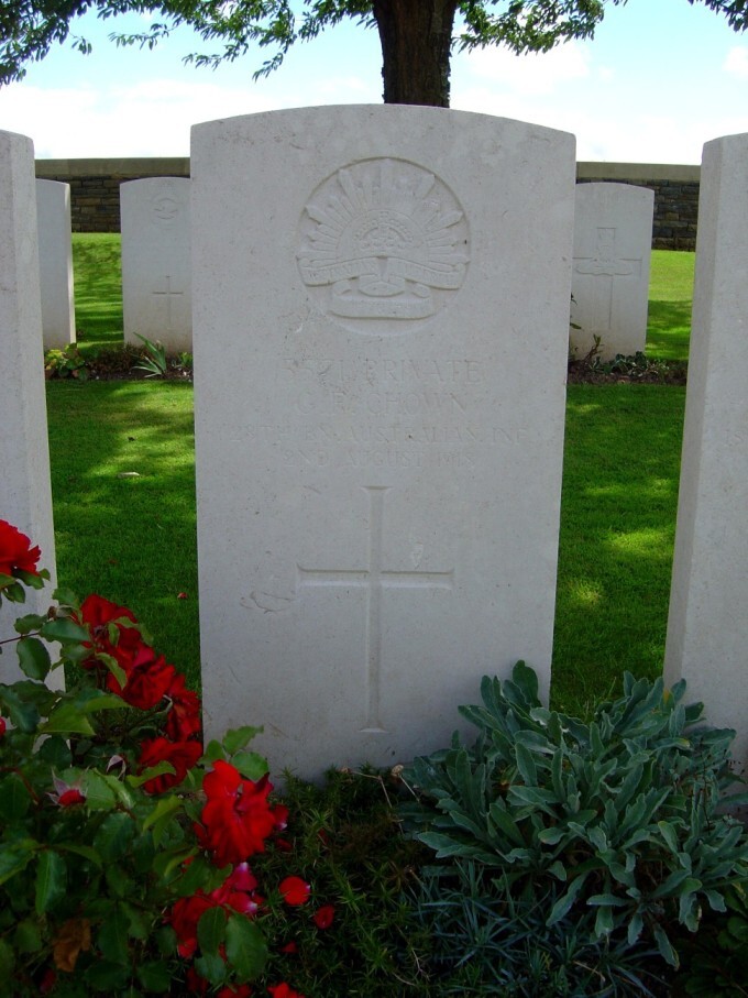 When he was fit enough he returned to France, rejoining the 28th Battalion on the 8th June 1918. On the 29th July 1918 George was wounded in the sides and chest by a shell and was evacuated back to the 47th Casualty Clearing Station. Unfortunately the wounds proved too severe to recover from and George died on the 2nd August 1918. He was buried at Crouy-sur-Somme Cemetery in Plot IV.D.8