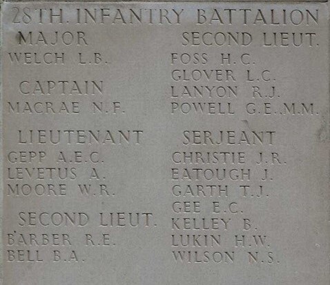He spent 1918 with the Battalion and went with them to the Somme to combat the German breakthrough and from April to August was in the vicinity of Amiens and Villers-Bretonneux. On August 8th the large allied offensive began and the Australians advanced rapidly, pushing the Germans back. From August till October the Australians were constantly in action, though as they were low in numbers were about to be withdrawn for a well deserved rest. On the 3rd October 1918 the 28th Battalion took part in their last action of the war in the Beaurevoir Line. It was a successful attack though Sgt John Christie was killed. 15 members of the 28th Battalion were killed that day, though John Christie is the only one without a known grave. He is therefore commemorated on the Villers-Bretonneux Memorial. There was an unofficial report that he was buried at a spot near Bellevue Farm, about 1 mile due west of the Beaurevoir line but no map reference was given.