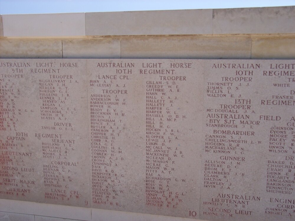 In October 1914 he offered his services to the AIF, and was accepted as fit. Albert was found to be 5 feet 8 & ¾ inches in height; weight of 161 lbs; chest measurement of 37 inches; fair complexion; blue eyes and fair hair. His religious denomination was Roman Catholic. Albert was assigned to “A” Squadron of the 10th Light Horse Regiment.