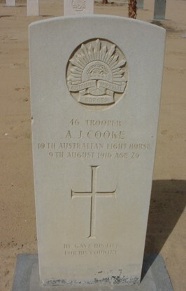 “Cooke – On August 9, died of wounds in Egypt, Trooper Allan James Cooke, served through Gallipoli, dearly loved son of Mr. and Mrs. John Cooke, and loving brother of Will, Madge, Hazel and Hilda.
