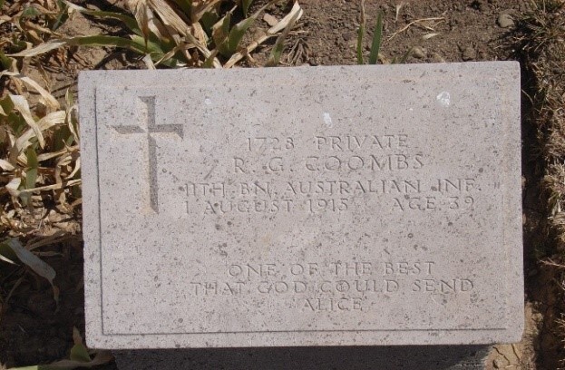 After his death, his two sons, Cecil and Robert were allotted a pension of 20/- per fortnight. However Robert’s was cancelled a few years later as he died on the 1st January 1920 aged just 19, a victim of the influenza outbreak. Cecil Coombs went on to serve in the Royal Australian Air Force in World War Two and died in 1986.