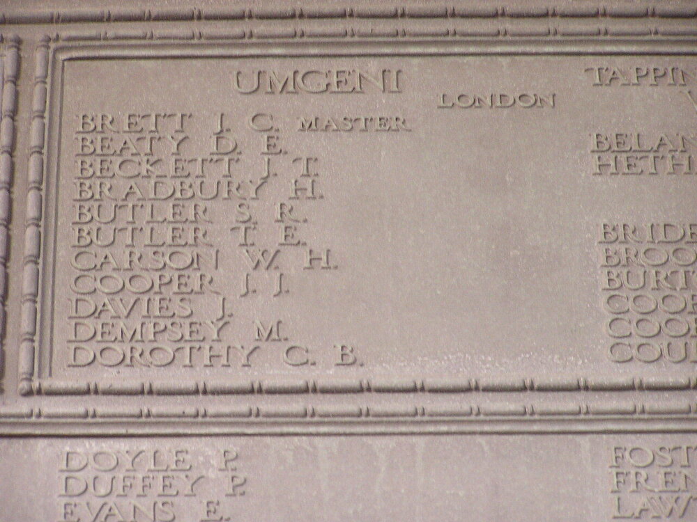At the outbreak of the First World War the Umgeni was taken over by the Admiralty for service as a supply ship. On November 7th 1917, she left the Clyde in convoy for Lagos. Two days later the convoy ran into foul weather and became dispersed. The Umgeni was never seen again, but bodies and wreckage from her were washed up along the west coast of Ireland.