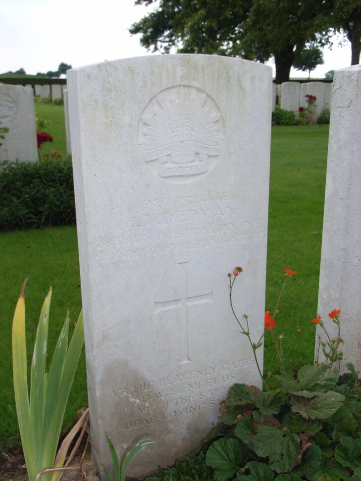 After the 2nd Division was relieved from the Somme front it was sent north to a quieter part of the front line at Ypres. They would spend September and a part of October here before returning to the Somme. On November 3rd 1916 the 28th Battalion, as part of the 7th Brigade launched an assault on the German lines. The attack was unsuccessful and unfortunately Herman was killed by a German shell. He was buried and after the war was relocated to Warlencourt British Cemetery in plot V.B.39.
