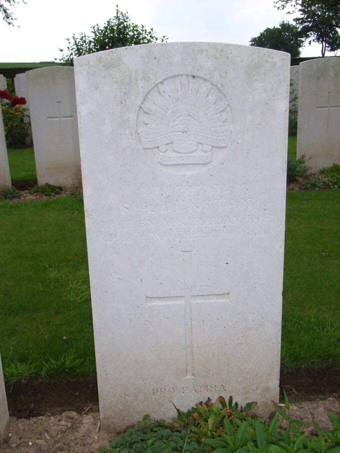 His cousin Percy Dunstan was killed in the war with the 32nd Battalion AIF on the 20th June 1918.