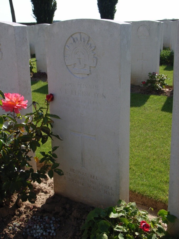 Alfred remained at No.4 Command Depot until the 15th July 1918 when he was transferred to the Overseas Training Brigade at Suton Veny Camp. At this camp Albert went absent without leave from the 30th July to the 1st August 1918. He was given 2 days of Field Punishment No.2 and had to forfeit 4 days pay. On the 8th August 1918 Albert left England and proceeded over to France where he marched into the Australian Infantry Base Depot at Le Havre. On the 15th August 1918 he rejoined the 11th Battalion where they were taking part in the Battle of Amiens. A week later on the 23rd August 1918 as the 11th Battalion were about to embark on another assault on the Germans, Albert was in a sunken road on the left of Proyart when a German shell exploded killing him instantly. From reports he had no injuries on him but had apparently been killed by the shell concussion.