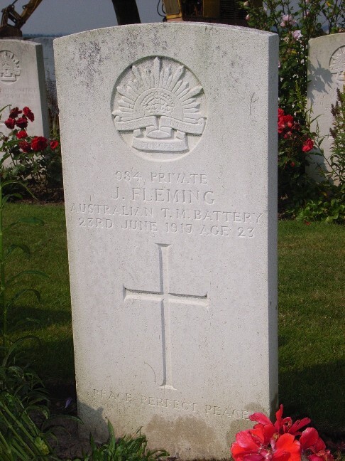 He was buried in Queensland Cemetery which was 1 mile east south east of Messines though after the war was over he was exhumed and buried at Messines Ridge British Cemetery in plot I.E.8