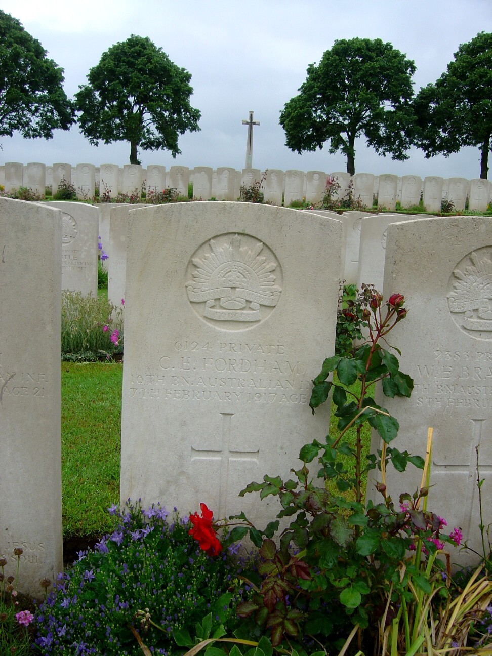Unfortunately the wounds proved too severe and Charlie died on the 7th February 1917 while at the 45th CCS. He was buried at Dernancourt Communal Cemetery Extension plot V.A.15.