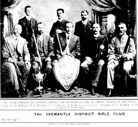 In the years after leaving school Eric worked for Messer’s. Wilshire and Feeley in Fremantle but then embarked upon a career of surveying and draughtsmanship in which he worked around the south west portion of the state for the Lands Department. During this time Eric had also managed a career in the military forces of the state, as well as being a prominent member of the local rifle club. After going through a cadet scheme at school, Eric joined the Western Australian Infantry Regiment (W.A.I.R). He was posted to “F” Company of this Regiment which was known as the “Fremantle Highlanders”. He rose to the rank of Colour Sergeant and though his work in the Surveying industry necessitated a break from the military service it would not be for long.