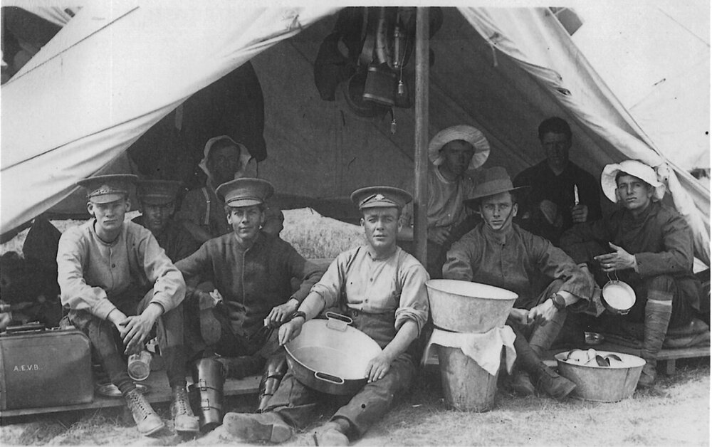 (Photo below - Charlie Gartrell (far left) either at Blackboy Hill or Maribyrnong Camp)