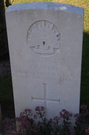 After the war John’s grave was left at Daours Communal Cemetery Extension in plot IV.B.9. John’s brother Harry Clarke also served in the war with the Camel Corps and the 14th Light Horse Regiment. He returned home in 1919. John’s brother in law Pte William Jones of the 48th Battalion died in Belgium in October 1916 and is buried in Lijssenthoek Military Cemetery.