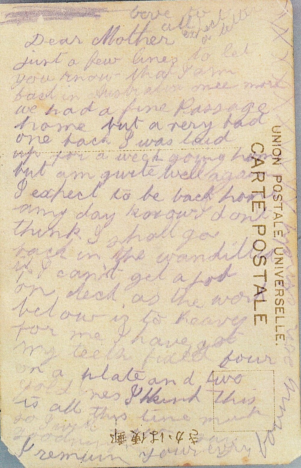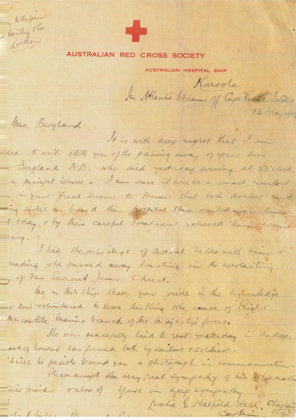 At the time of the Great War he was working for the Merchant Navy and was soon working aboard the Australian Hospital Transport Ships.