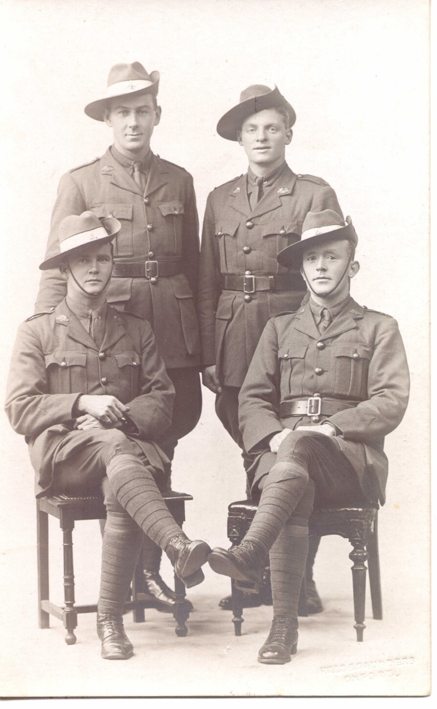 Edwin (bottom right) while at Officer Training School in Oxford in 1917 (photo courtesy Flanagan family page Ancestry)