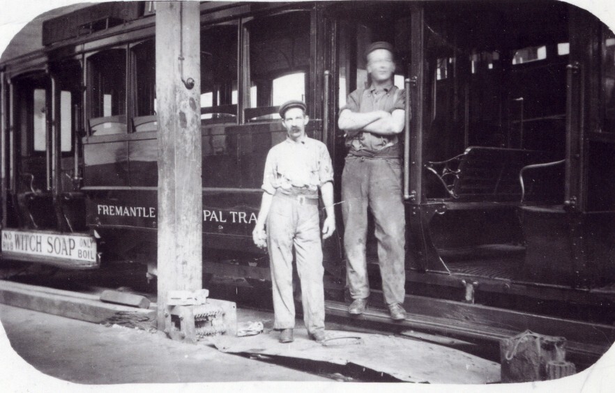 (Two photos below shows George Gibson at the Fremantle Tramways Depot in High Street Fremantle)