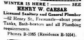 Henry William Caesar was born in Fremantle in 1892 to Frederick and Lilly Caesar. He was one of eleven children born to Frederick and Lilly and the family lived at 183 Queen Victoria St Fremantle.
