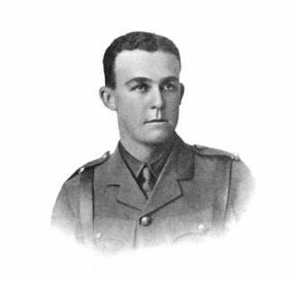 One misty morning Fritz was very daring. In spite of the fact that the trenches at one part of the front were but twenty-five or thirty yards apart, a sniping contest was taking place at anything from 30 to 200 yards distance, and just as one of the boys signaled a “bull”, Lieutenant “Alf” Guy, with C.S.M. Dick Cornish, of “A” Company, with more daring than judgment, looked over the top to investigate. The two tin hats at this short distance formed a target which even the worst shot in the German Army could hardly fail to score on, and without a sound, the little lieutenant fell to the bottom of the trench, a shot passing through his tin hat and left side of the head. Cornish immediately reported the casualty to the next officer in charge of the line, and an inspection revealed the sad fact that Alf was apparently “out for keeps”.