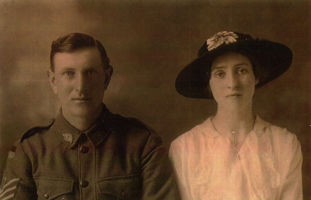 It was during this time in England that James got married. Agnes Ann McHardy came down from Aberdeen to marry James at Durrington Church. Durrington was near where James was based, an though they had no honeymoon, at least they were able to see other a bit until James returned to the Western Front. They had two children born in Scotland, Veronica in 1918 and Irene in 1919.