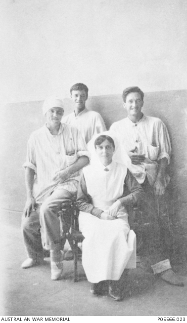 It was while at this hospital that Richard had a photo taken with a few mates and Nurse Crohan from Fremantle (below) Richard on right.