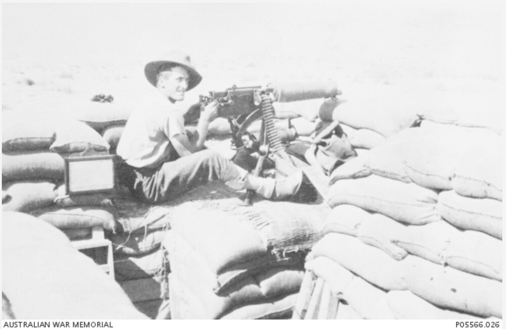 Photo below from the Australian War Memorial shows Richard at his Machine Gun in the Sinai desert.