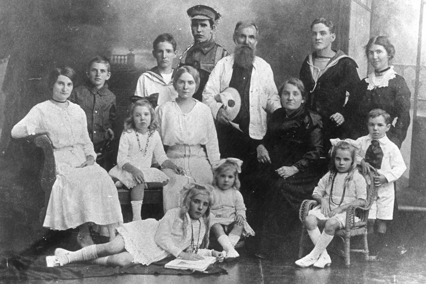Claude Harris was born in Fremantle WA on the 8th November 1896 to Frank and Fanny Harris. He was one of several siblings; Victoria (1887), Walter (1889), Arthur (1891), Alexa (1892), Hubert (1894), Melva (1898), Edward (1903), Alice (1908) and Rosamund (1912). (The family pictured to the right-Claude is in the Navy uniform and Hubert who was away on army service when the photo was taken was superimposed into it at a later date)